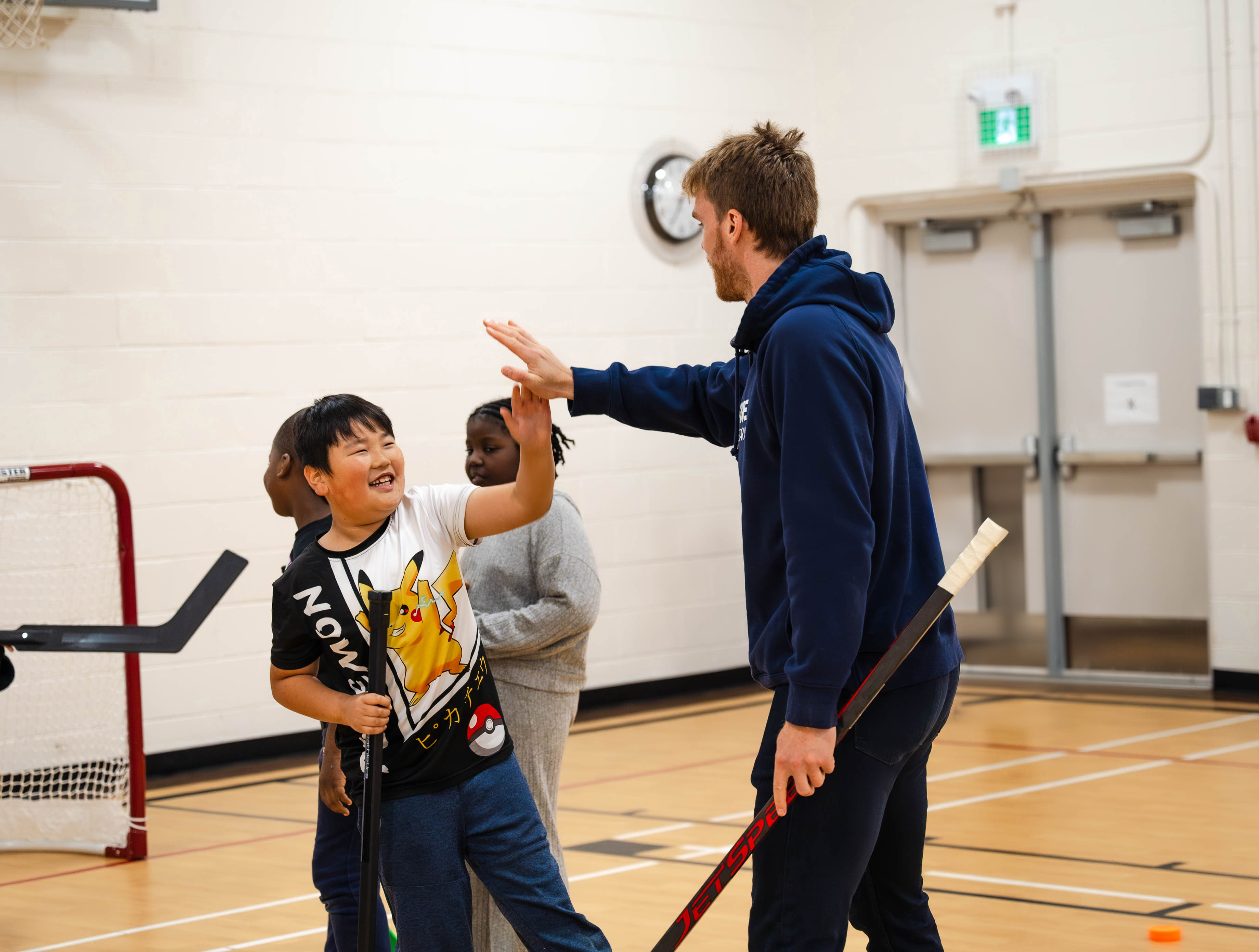 Here are some pictures of our floor hockey game with the Captain of the Oilers, Connor McDavid! We learned so much from him about working hard for our dreams, listening to our parents (and teachers!) and eating our vegetables!